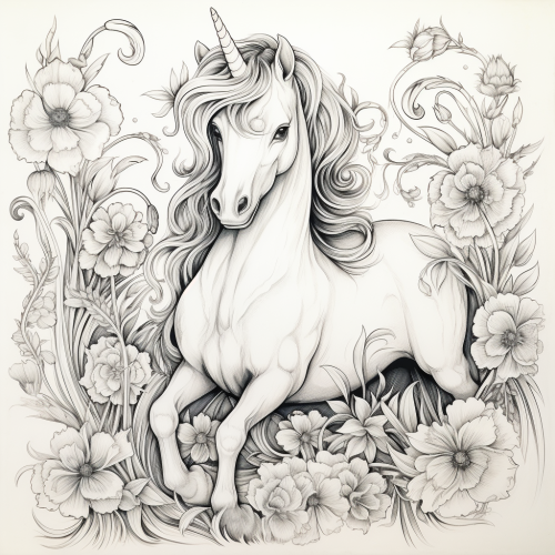 extremely simple outline of a small cute cartoon style unicorn infront of the rainbows , Black lines.Perfect for a coloring book, white background, black and white, The unicorn and the child enjoy a delightful picnic in a sun-drenched meadow, surrounded by blooming flowers and fluttering butterflies --v 6.0