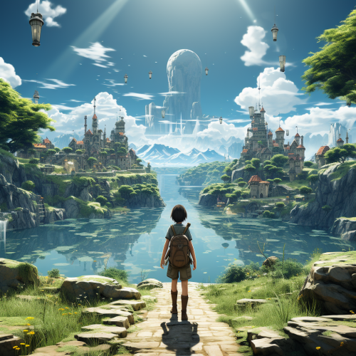 Enchanting floating islands with rainbow bridges and magical creatures.