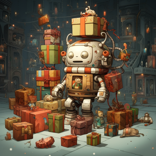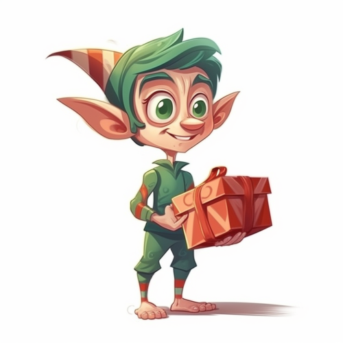 cute christmas elf holding a present box, detailed, cartoon style, character sheet, white background --s 750 --v 5.0