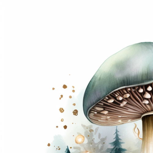 scene watercolour Christmas mushroom, magical, glitter, dreamy, mint and gold, magic dust around, dark colors, illustration, mixed media, 8k, detailed, white background, clipart --v 5.2
