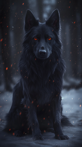 Chien Doberman avec des pouvoirs de feu, son corps entier est visible, avec un pelage noir aux reflets flamboyants rouges et dorés. Des flammes crépitent autour de ses pattes et de sa queue, tandis que ses yeux scintillent d’une lueur enflammée. Le fond est un paysage en feu, avec des flammes et des cendres flottantes. 8K, highly detailed, --ar 9:16