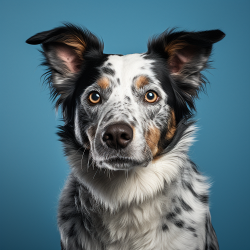 Chien réaliste avec des pouvoirs de charme, son pelage est d'un violet doux avec des motifs scintillants dorés. Ses yeux brillent d’une lueur chaleureuse et envoûtante, et des éclats de lumière magique flottent autour de ses pattes et de sa queue. Le fond est un paysage féerique avec des lumières douces et des étoiles scintillantes. 8K, highly detailed, --ar 9:16