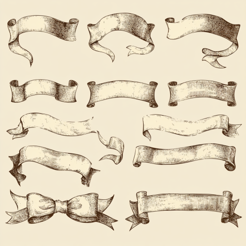 Vector ribbon parchment banner set. Vintage hand-drawn illustration. Vector illustration of ribbons and banners in the style of engraving, isolated on a blank background.