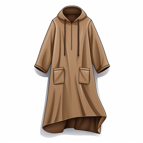 traditional light brown long thobe coat, with dark brown stitching , moroccan style, with pointed long hood, on hanger, sticker, cartoon style, white background