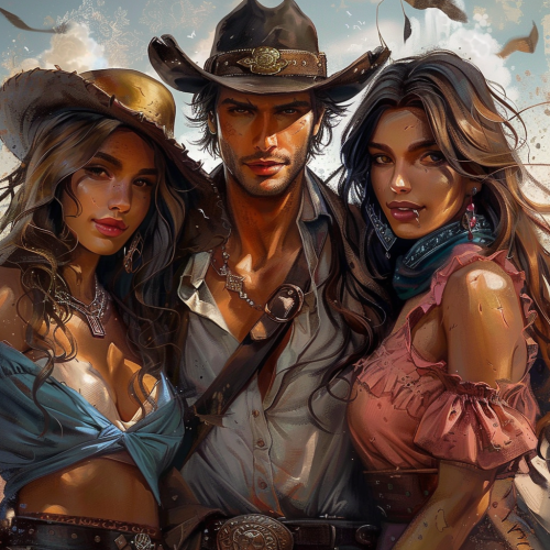 1 american cowboy with 3 moroccan girls, profile picture, anime --v 6.0