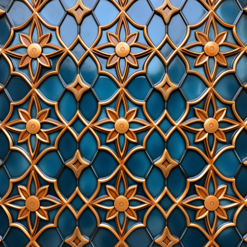 Geometric Moroccan pattern with repetitive diamond-shaped motifs and intricate latticework, showcasing the mathematical precision and craftsmanship of Moroccan design.