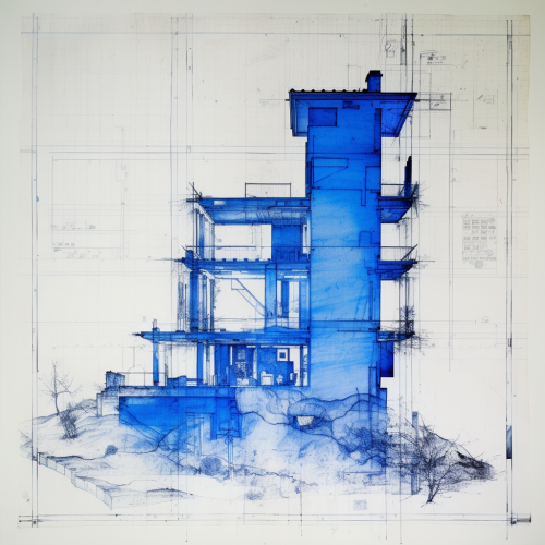 blue print of ta sture, large image showing design of a foundation and a house , large drawings, flat image, no backgound ony the blue prints, white iamge with black desigh and writing