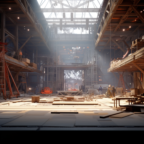 A candid team picture of a small team of cnc-engineers in a hall. The engineers are in the foreground in the right part of the picture, while the rest of the picture shows the working enviroment with cnc-machines. The picture conveys team building and teamwork of cnc-engineers by making the engineers stand out. The picture conveys the wish to be a part of this team and start working with them. Blue light and blue photo filter, photorealistic, blueish vibe HDR --ar 16:9