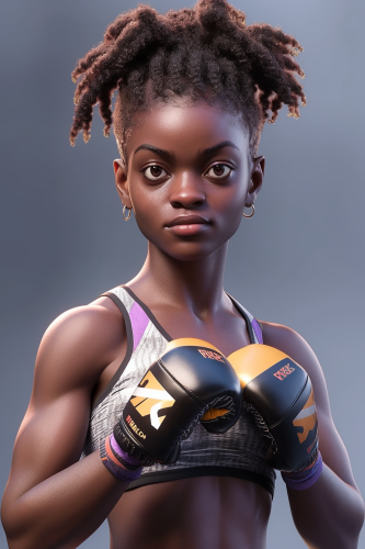 african beautiful woman mma fighter, full body shot, silver background, octane render, 3D, ray tracing, 8k, depth of field, full body, centered --no out of frame, text, username, logo, tattoos --niji 5 --style expressive --s 400 --ar 2:3