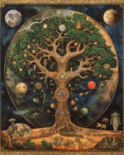 the axis mundi tree of life connecting heaven and earth --ar 4:5 --v 6.0