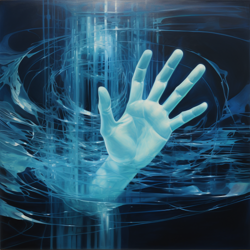 thin, soft, and transparent sheet is stretched by blue machine hands, black circuits::1, wave