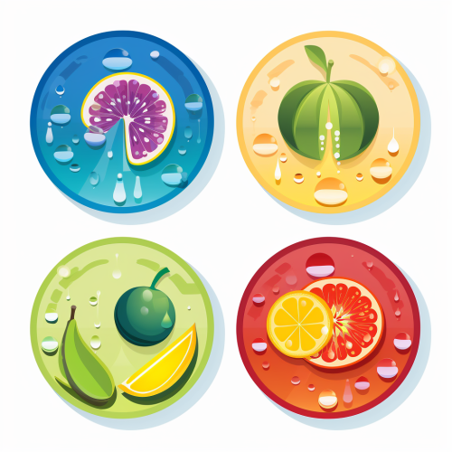 interconnecting circles each enclosing a fruit icon, vegetable icon, water drop icon, sleep icon