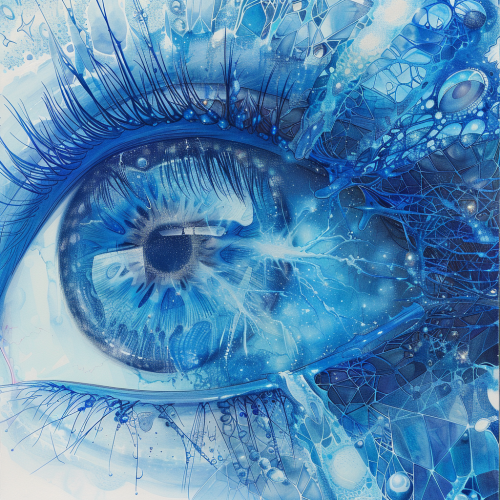 Create a detailed image capturing the essence of 'Limitless Blue Eyes', with the eye filling the entire frame. The illustration should emphasize the mystical and luminous blue hue of the 'Limitless Blue Eyes', radiating a powerful aura. The eye should appear glossy and radiant, with a shimmering effect that highlights supernatural abilities. Focus on bringing out the depth and clarity of the blue, making it glow with an otherworldly light, to reflect the immense power and enigmatic presence of gaze. Capture the essence of this rare and powerful eye, highlighting its supernatural capabilities such as traversing space-time and manipulating various jutsus, to reflect the full range of its extraordinary abilities.