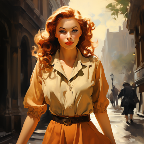 beautiful ginger hair woman walking by Enoch Bolles, full pose, confident look --s 750