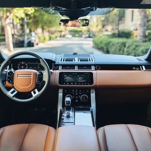 A luxury car parked on a high-rise rooftop overlooking a modern city skyline at sunset, soft golden light reflecting on glass skyscrapers, high-end urban setting, sleek and refined, ultra-realistic --ar 16:9 --v 6.1