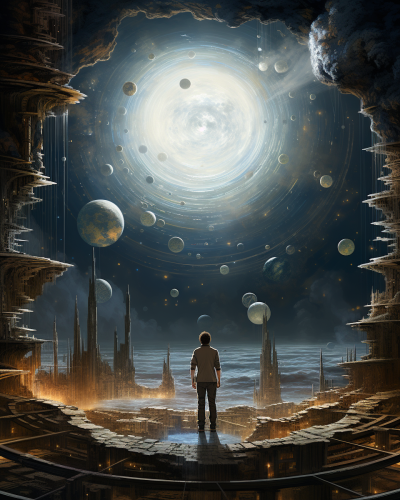 inside a huge circular hall surrounded by gigantic whites statues, fantasy and scifi, imposing, epic, grandiose, photorealistic::3 realistic::3 design::3 hall :3 statues: 5 --ar 4:5 --version 5.2