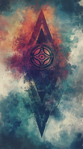 Magic sigil symbol, ibrant colorful, esoteric, backcard, figurative, symbol, sigil, runes, oho art, watercolors, muted colors, duotone, flat, cool colors, card format --ar 9:16