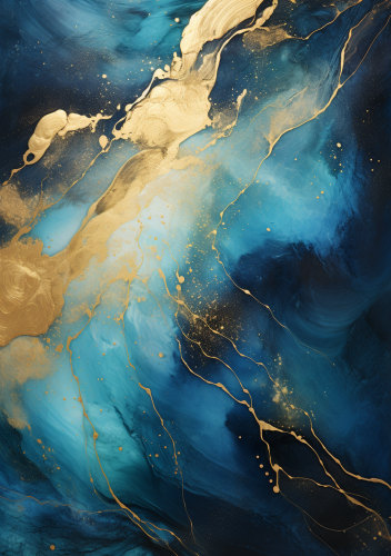 i see the light abstract, turquoise, and blue, and gold paints, in the style of opaque resin panels, dark teal and gold, romantic riverscapes, dark navy and beige, flowing fabrics, use of earth tones, bio-art --ar 19:27 --s 250