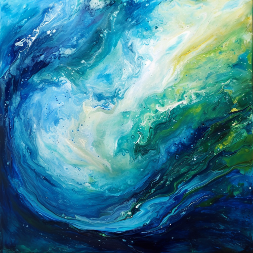 An abstract painting, with lots of blue and green swirls, that conveys a magical life force --v 6.0
