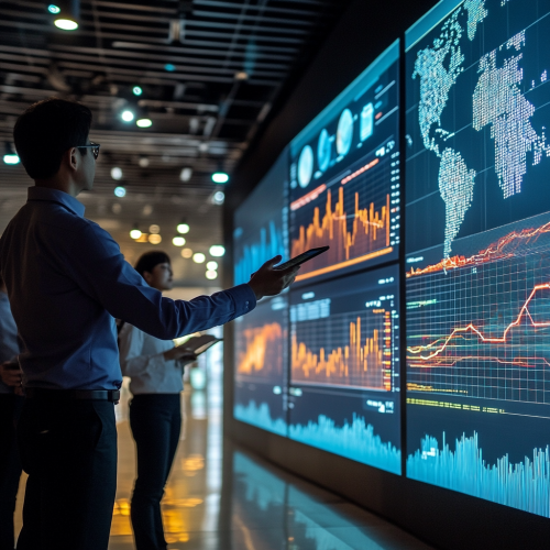 Agents discussing strategies with maps and gadgets
