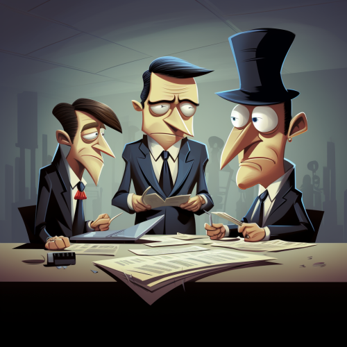 cartoon characters planning on stealing corporate secrets.
