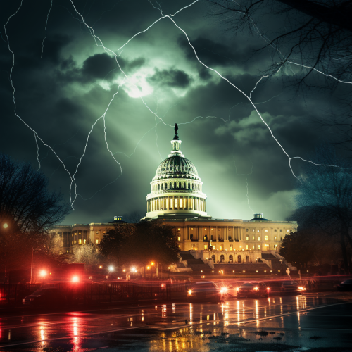 international conspiracy theme set in the United States. electromagnetic pulse. Washington D.C. area. dark night scene.