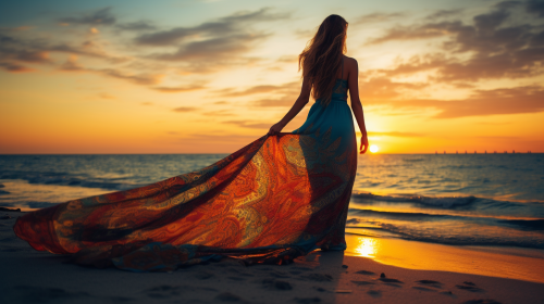 Color and Light: Specifying colors and lighting effects can greatly influence the atmosphere of the image. For example, 'A golden dog running along the beach under the sunset, with the sea reflecting the orange glow-V6 --v 6.0