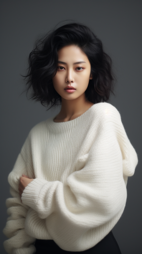 a Korean female model wearing Prada style Cashmere Sweater ;--v 5.2 ; --ar 9:16