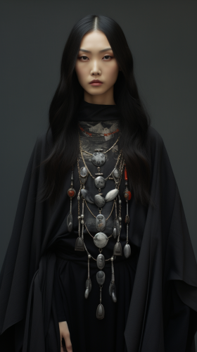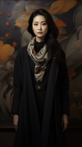 a Korean female model wearing Prada style cashmere dress ;--v 5.2 ; --ar 9:16
