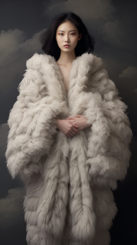 a Korean female model wearing Prada style cashmere dress ;little fluffy ;--v 5.2 ; --ar 9:16
