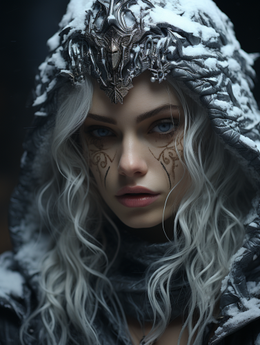 evil queen, pale frozen skin, white hair, evil eyes, gothic, necropunk, snowy forest, night, cold, dark, 3D stereoscopic, 8K, HDR --s 750 --ar 9:12
