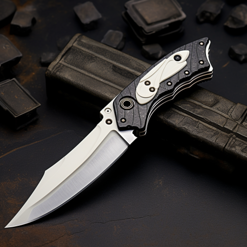Folding knife, EDC, Droppoint, blackened blade, white handle, Elforyn
