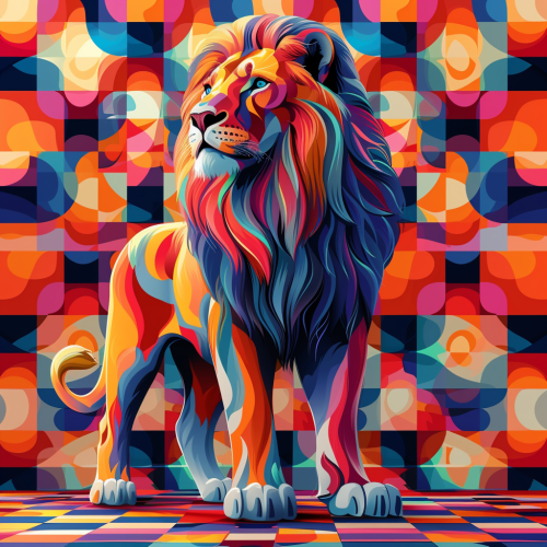 anthropomorphic lion with exaggerated limbs right from a hyperrealstic chessboard, radioactive colors, vector art, simple background --s 750 --v 6.0 --style raw