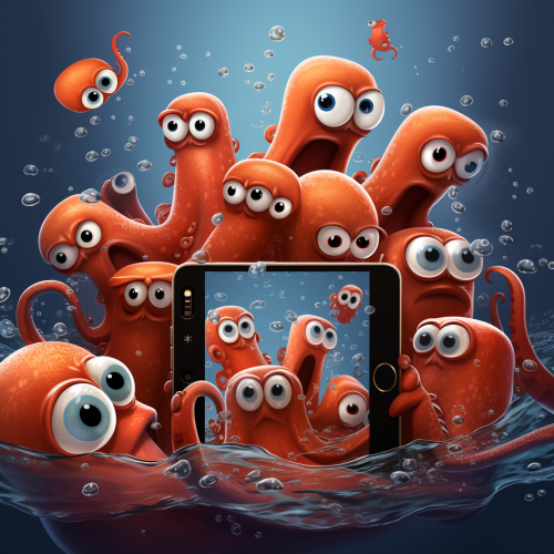 virus reaching out of a phone screen, green, illuminating, black, deadly