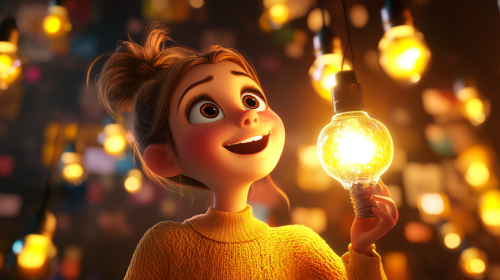 ( Sally a girl)Sally with a bright idea, her face lighting up with excitement.,animated-style, high detail,ultra-realistic,high detail,vivid colour --ar 16:9