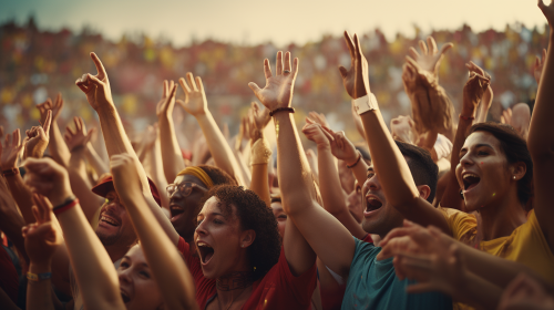 silhouette of medieval crowd, people cheering, 1500s, semi realistic, --ar 2:1