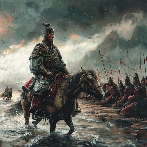 ancient china, a brave general was outnumbered and defeated, he retreated and was blocked by a river, a fisher wants to give him a ride, but he refused and would rather die --v 6.0