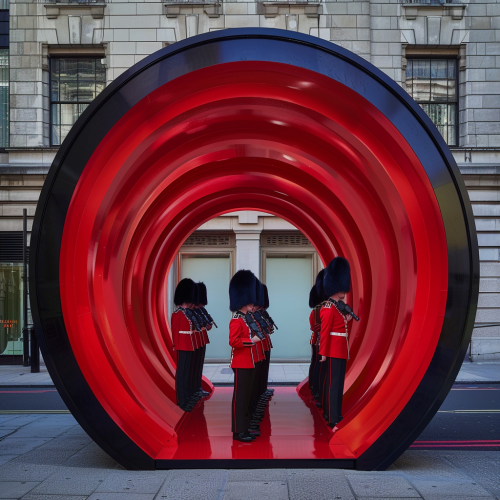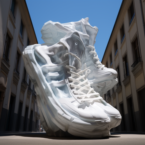 an installation of a giant sneaker plastic shoe, coming out of the side of a building in milan, hyper realistic, daylight, 8k