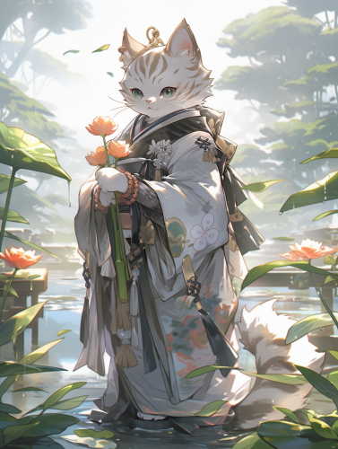 [e07c86db5] Chinese ancient style illustration of a cat, wearing a Chinese dress, standing by a river, super high definition --niji 5 --ar 3:4 --c 0 --s 750