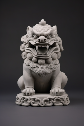 chinese lion made of terracotta clay, grey color backrgound --ar 2:3 --s 30 --v 5.2 --style raw