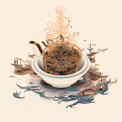 The main body is a teacup and an incense burner, the teacup and the incense burner emit fragrance entwined together, line drawing, Chinese style
