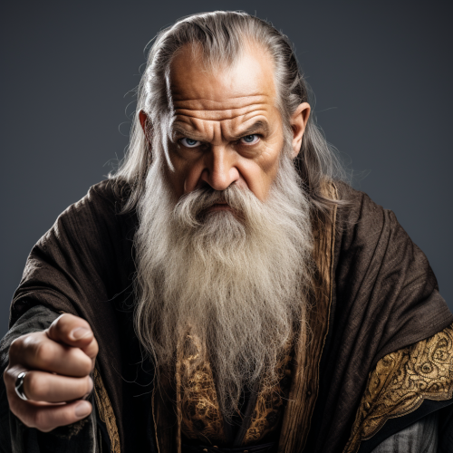 studio photo of a futuristic male wizard with a beard looking straight into camera with determination and anger, intricate, gold robe, eastern style influence, asian details, maximalism, dynamic pose, action, plain white background, studio lighting ::1 Background ::-0.5 --style raw --v 5.2 --s 250