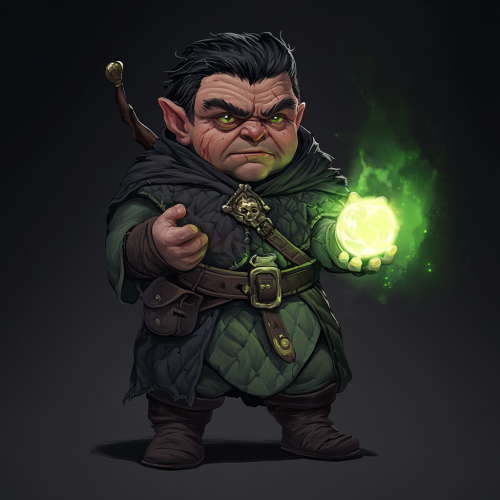 dungeons and dragon character, full body, stocky build, scarred visage, male, gnome, wizard, casting colour spray ability, dramatic lighting, dark black hair, olive skin, Asian facial features, crazed look in eyes, Wes burt inspired, dramatic lighting, realistic --v 6.1