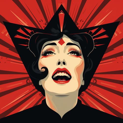 a red and black illustrated fortune teller game, face of a man, mouth wide open