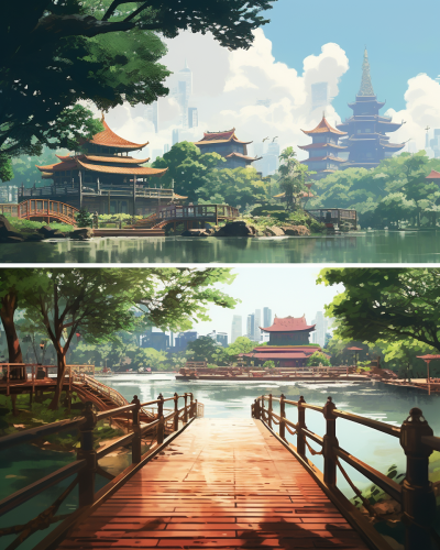 Lumpinee Park in Bangkok, realistic and cinematic view , Ghibli, by Miyazaki --ar 4:5