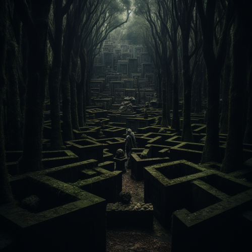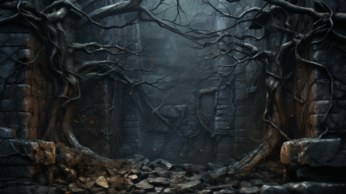 hyperrealistic Fantasy atmosphere dark foliage and brumbles with thorns, cracked urban stone background
