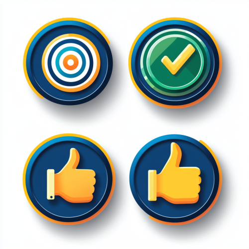 Three icons representing (1) data-centric approach that is a blue data icon, (2) strategic planning that is a green bullseye icon, and (3) customer satisfaction that is a yellow thumbs-up icon. Transparent background