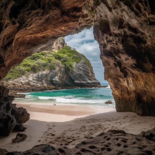 hidden beach through a cave in Mexico with a small opening --v 5.0 --s 750