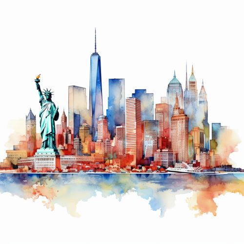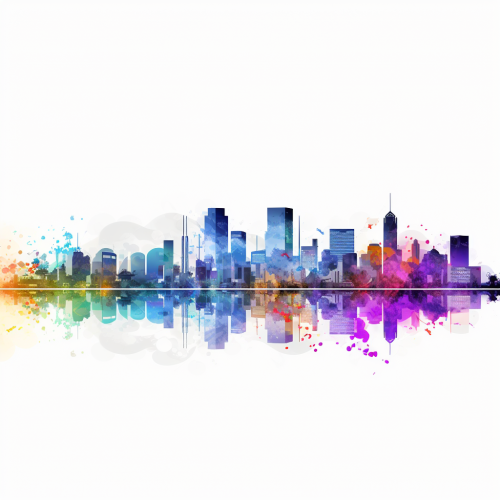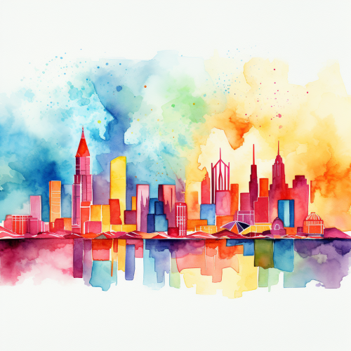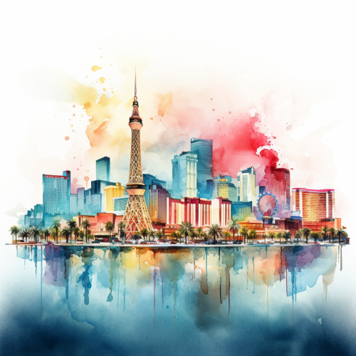 an abstract flat art illustration, watercolor of the las vegas skyline, colorful