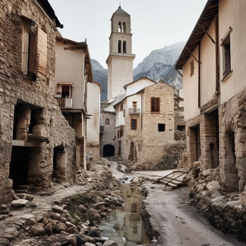 illustrate a old world doorway in lucca italy, covered in wisteria and vines, mesmerizing colorscapes, vibrant urban scenes, purple and green and orange, bright and warm, travel photography, in the style of impressionistic illustration --ar 5:7